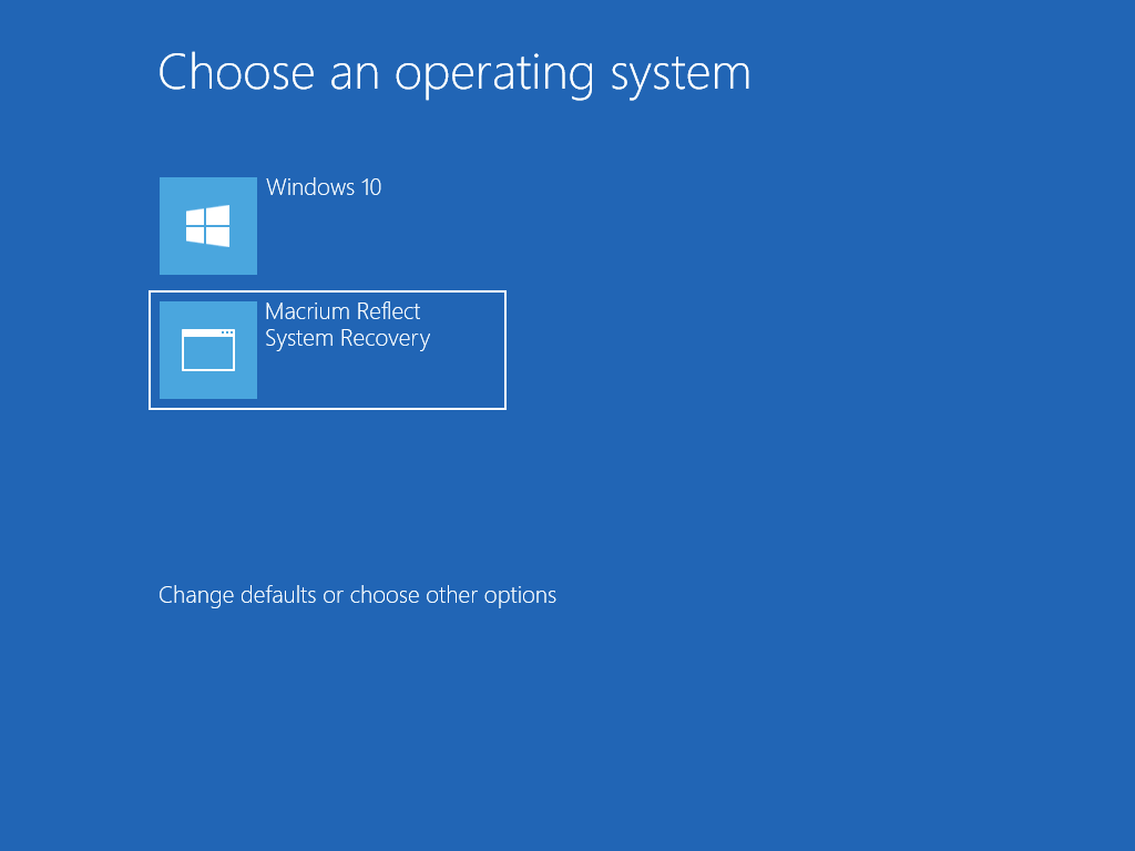 Selecting 'Macrium Reflect System Recovery' will boot the system into the Macrium Reflect rescue media.