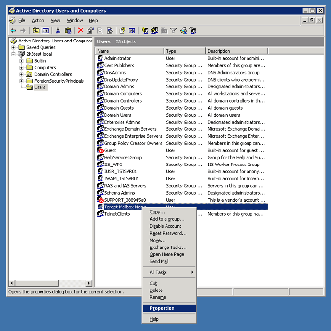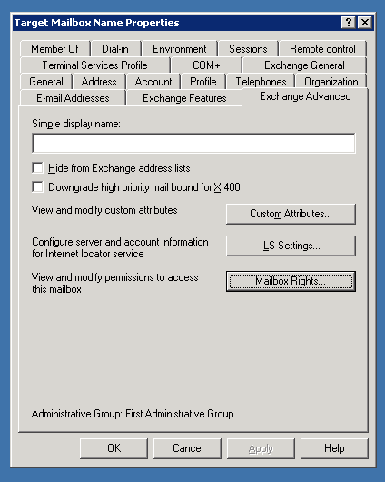 - In the window that opens, select the 'Exchange Advanced' tab, then select 'Mailbox Rights':