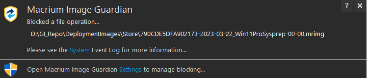 The same settings can also be accessed by clicking the 'Settings' link in a Macrium Image Guardian toast notification after a MIG event: