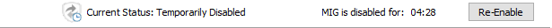 The 'Current Status' of MIG can also be viewed at the bottom of this page. The available statuses are: