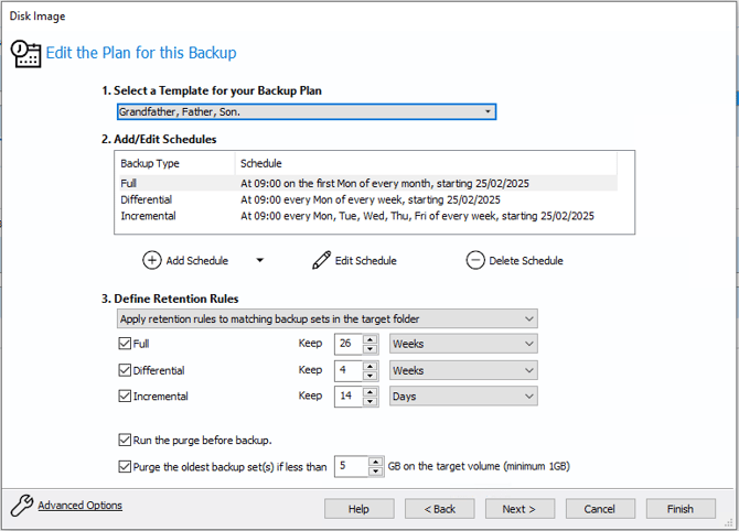 On the next page of the 'Disk Image' wizard, a schedule can be created to ensure that changes to the system are also backed up regularly.