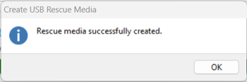Once the Windows Boot Menu Rescue Media Option has been created, the following message will be displayed: