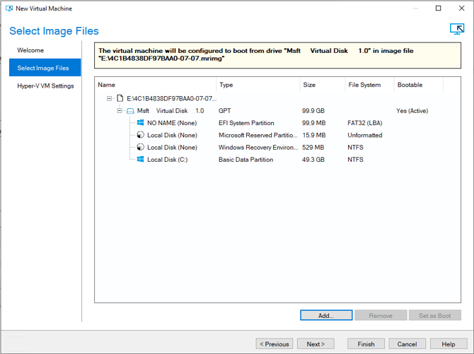 The first bootable disk contained in the image will be marked as the boot disk. If the image contains multiple bootable disks (e.g., an image of a dual-boot system), the boot disk can be changed by selecting a disk, then selecting the 'Set as Boot' button.
