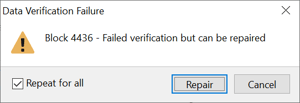 If this option is selected and corruption is detected in a data block included in the backup, the current live file system is checked to see if it contains the original data. If the original data block is found then the image file is repaired by replacing the corrupt data.