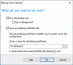 Reflect 8.1 adds a new option to allow backups to be run in the background, therefore allowing users to continue using the Reflect GUI to perform other tasks. Restarting Reflect will show any existing background task status.