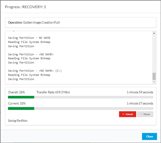 The progress of the golden image creation can be viewed in the window that opens on the computer being imaged: