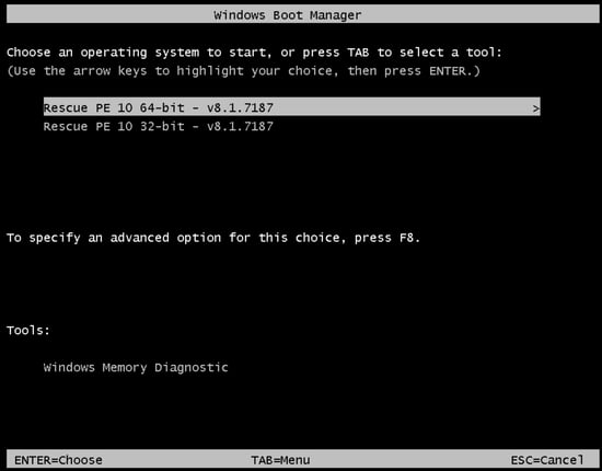 If the CPU architecture of the computer is 32-bit, then you will need to select a 32-bit version of the deployment media, otherwise, a 64-bit version of PE should be used. If the computer has UEFI firmware, then it is recommended that the PE 10/PE 11 version of the deployment media is selected, if the computer has BIOS firmware, then a PE 3.1 version should be used.