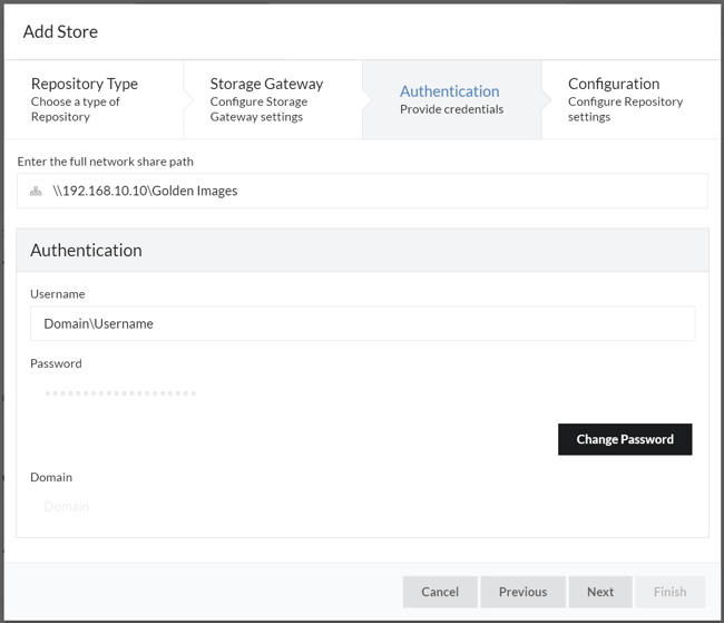 The user that is specified in the ‘Authentication’ section requires read and write access to the share that has been specified so that the golden images may be created. If the field is left blank anonymous access will be used.