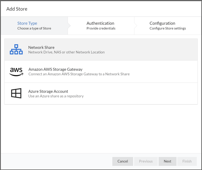 On the first page of the 'Add Store' wizard, select 'Amazon AWS Storage Gateway':