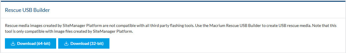 The ‘Rescue USB Builder’ can be downloaded at the bottom of the ‘Deploy Media’ tab.