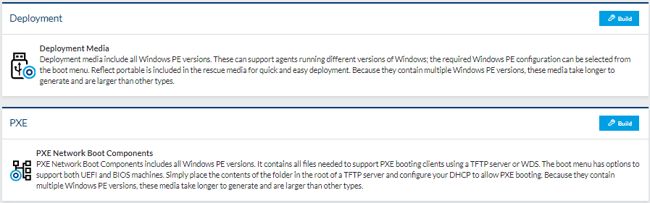 Deployment media is similar to the rescue media found in SiteBackup. The deployment media is used to boot computers for golden image creation and deployment. Deployment media can be created and managed on the 'Deployment Media' page of SiteDeploy.