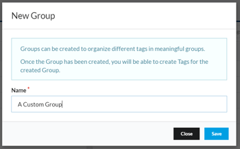 Each tag is contained in a group - these groups are used to categorize tags in menus and other places. For example, a "Departments" group might hold different tags such as "Accounts" or "IT".