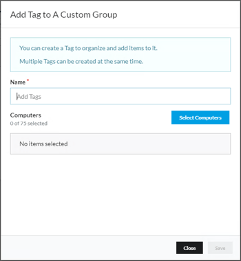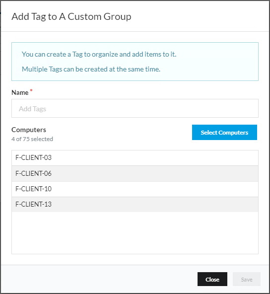 Click 'Save' to create the tags and add the selected computers to the tag's membership.