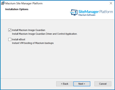 When you install SiteManager Platform for the first time, the installation will show you an option to install Macrium Image Guardian: