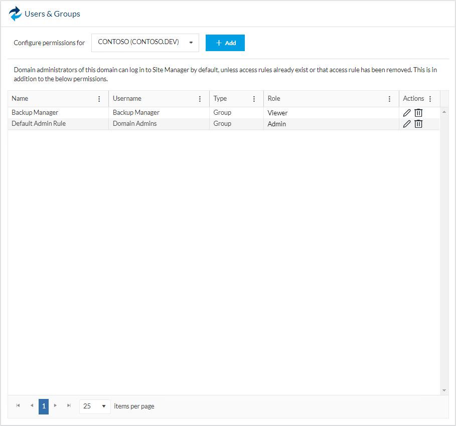 Additional users and groups can be granted access to SiteManager Platform, SiteBackup, and SiteDeploy and assigned roles to control how much access they have. Permissions are configured separately for each provider, select the correct provider from the dropdown before configuring permissions: